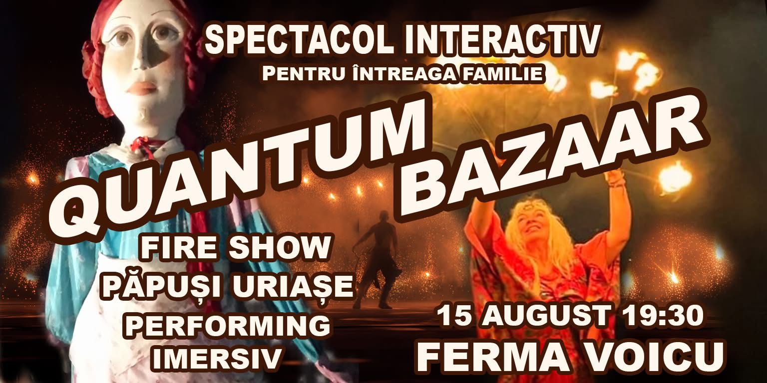 Prin forța cuvântului și prin hiperbole vizuale — păpuși uriașe, flăcări jucăușe, dans și momente interactive — „Quantum Bazaar” transformă sentimentele în realitate și creează amintiri de neuitat.