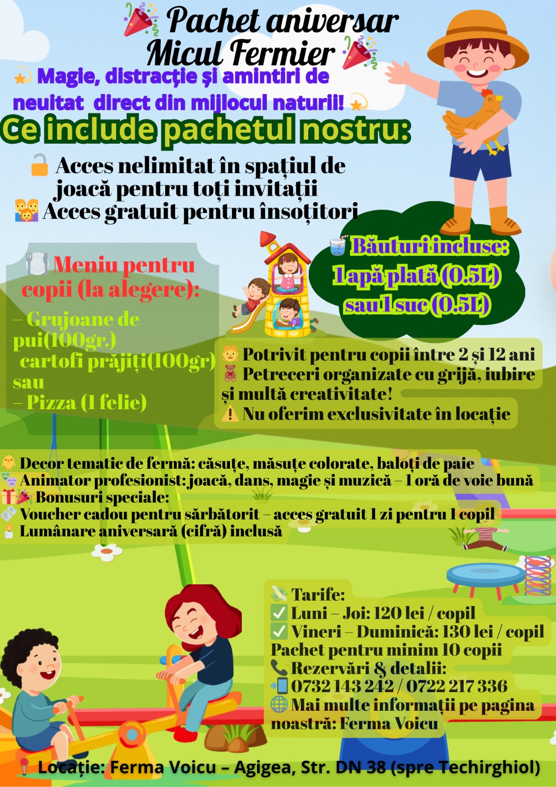 Vă invităm să sărbătorim împreună o zi plină de veselie, joacă și descoperiri la Ferma Voicu! 🌾