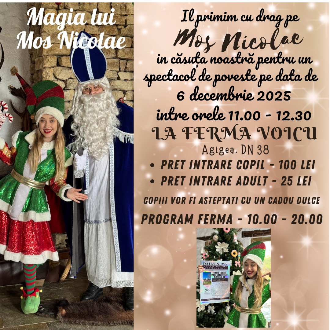 Îl primim cu drag pe Moș Nicolae 🎅 în căsuța noastră 🏡 pentru un spectacol de poveste 📖 pe data de 6 decembrie, între orele 11:00 – 12:30, la Ferma Voicu 🐴.